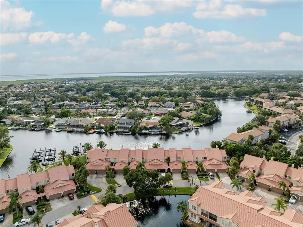 One or more photo(s) has been virtually staged. Modern Comfort Meets Waterfront Lifestyle including Community Club Membership!! | TURN-KEY ready townhome that blends stylish updates with the laid-back charm of waterfront living — just minutes from Tampa’s best beaches, shopping, dining and TPA airport. | PRIVATE FRONT ENTRANCE that is tucked away — no front or rear neighbors | LIVINGROOM FEATURES 17 FT HIGH CEILINGS WITH 2 clerestory skylights in combination with high set window starting 12ft up and extending to the 17ft CEILING | MODERN KITCHEN & BATHS with new Delta faucets and new toilets | NEW KITCHEN COUNTERTOPS AND CABINETS featuring a built-in spice rack | Refrigerator (purchased May 2024) with warranty included | NEW HALF BATH | NEW FLOORING throughout first floor and steps | DEN features collapsible counter — perfect for entertaining or a standing workspace | PLANTATION SHUTTERS in DEN and LOFT bedroom | freshly painted walls & ceilings | MODERN PENDANT LIGHTING Added to accentuate the high living room ceilings (none existed before) | UPDATED DECK plus a covered travertine patio with ceiling fan — relax on warm days while watching boaters glide along Old Tampa Bay | Community waterfront access for fishing blue crab or tilapia | FIBERGLASS INSULATION added to attic to improve A/C performance and lowered electric bills | UPGRADED electrical panel | GUTTERS ADDED (none existed before) | Prime Location: Community Club membership and access to Downtown Tampa, Tampa International Airport, International & Westshore Malls, and major highways. | Close to world-class Clearwater & St. Pete beaches plus Tampa Bay’s top dining and entertainment. | HOA includes pickleball courts, boat slips available to rent and more